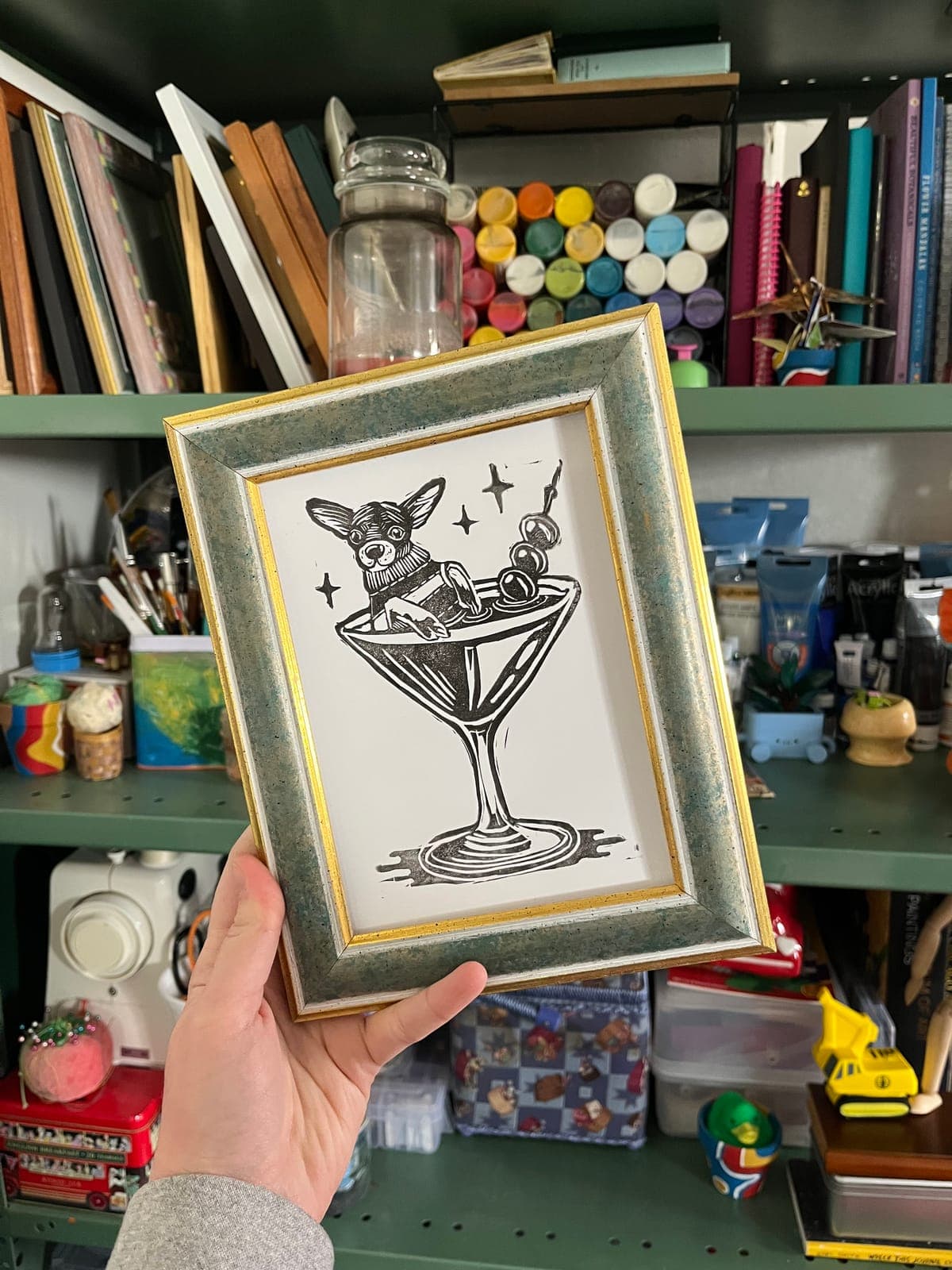 WHILE I IDENTIFY PRIMARILY AS A PAINTER AND PRINTMAKER, I LOVE TO EXPLORE OTHER (SOMETIMES UNCONVENTIONAL) MEDIUMS AS WELL -- I AM A DABBLER! AROUND THE BOOTH, YOU WILL SEE EVERYTHING FROM LINOLEUM PRINTS TO LEGO BRICK ART TO DRY-ERASE BOARD DRAWINGS. INDEPENDENT OF MEDIUM, I ENJOY UTILIZING BOLD COLORS AND UNIQUE TEXTURES IN MY ART.
