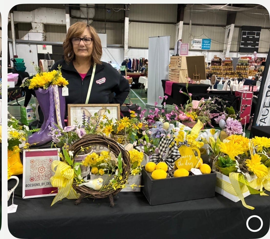 Two besties Ann & Deb creating one of a kind floral arrangements. Each item upcycled into bright fun current creations one flower at a time.