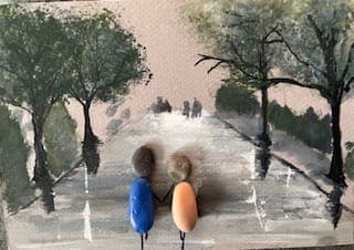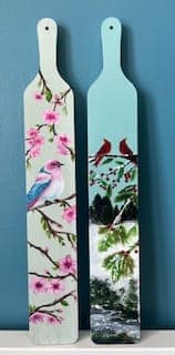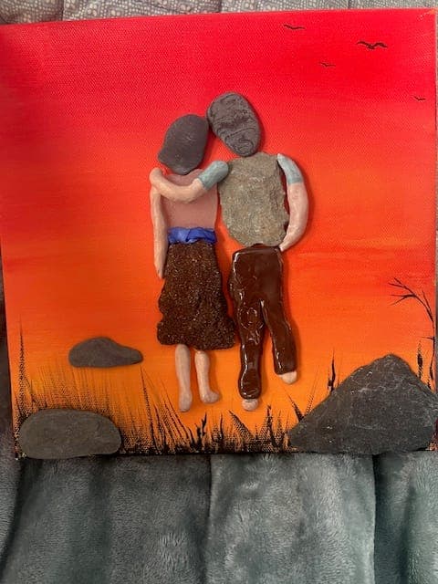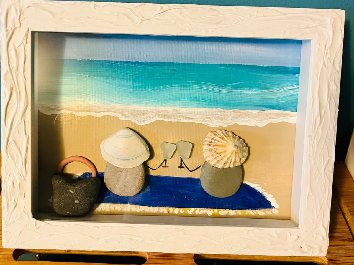 Pebbles & Palette began with an interest in creating art work using items from nature to depict scenes, figures and abstract designs but went on to expand to other mixed-media, as well as resin jewelry and hand-painted coasters and decor. Discovering a love for painting, experimenting and creativity, Pebbles & Palette has become my passion late in life, but not too late!