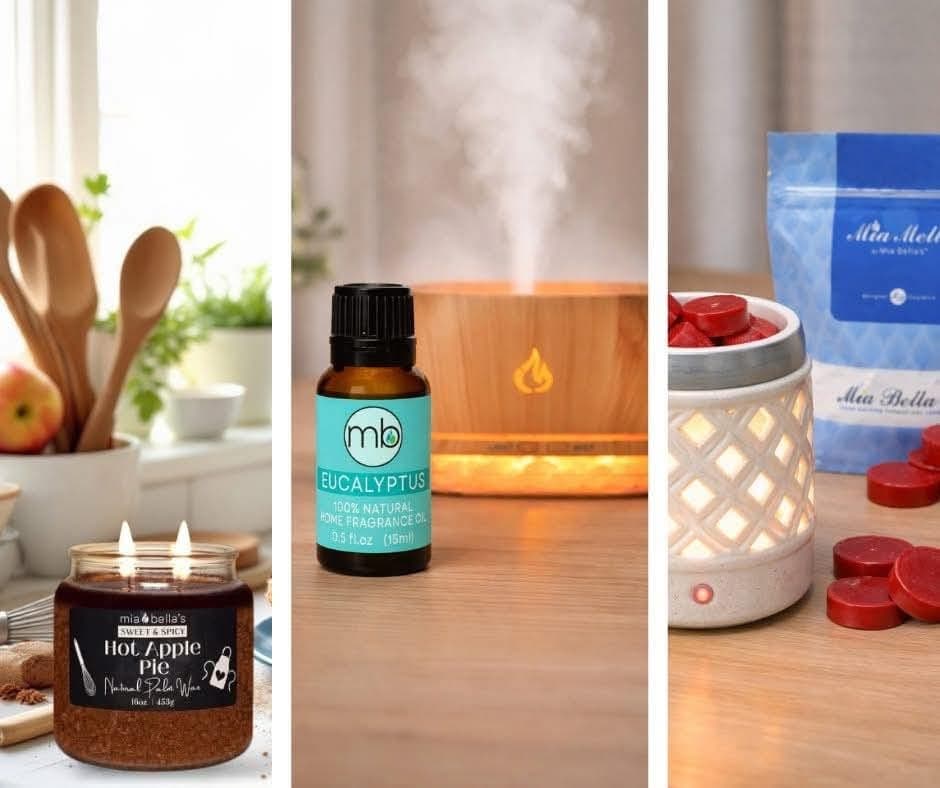 All natural palm wax candles, soot free, no black soot on your walls or ceilings, good for your lungs, pet friendly and have cotton wicks that trim themselves! We also have Scent Sways and wax melts.