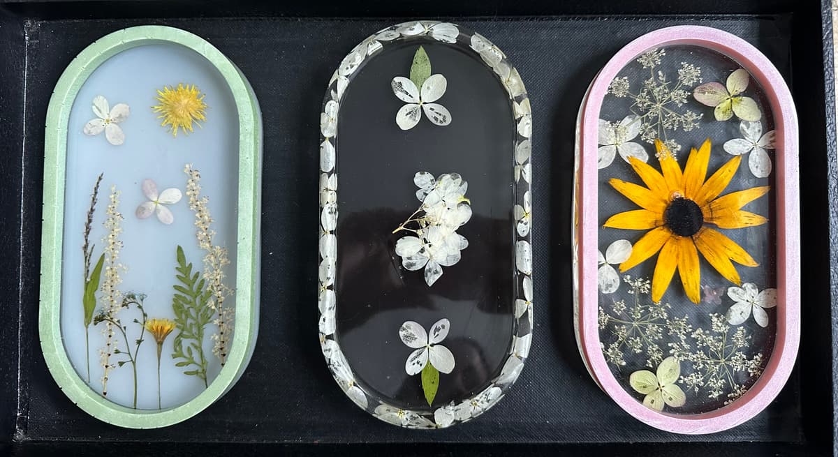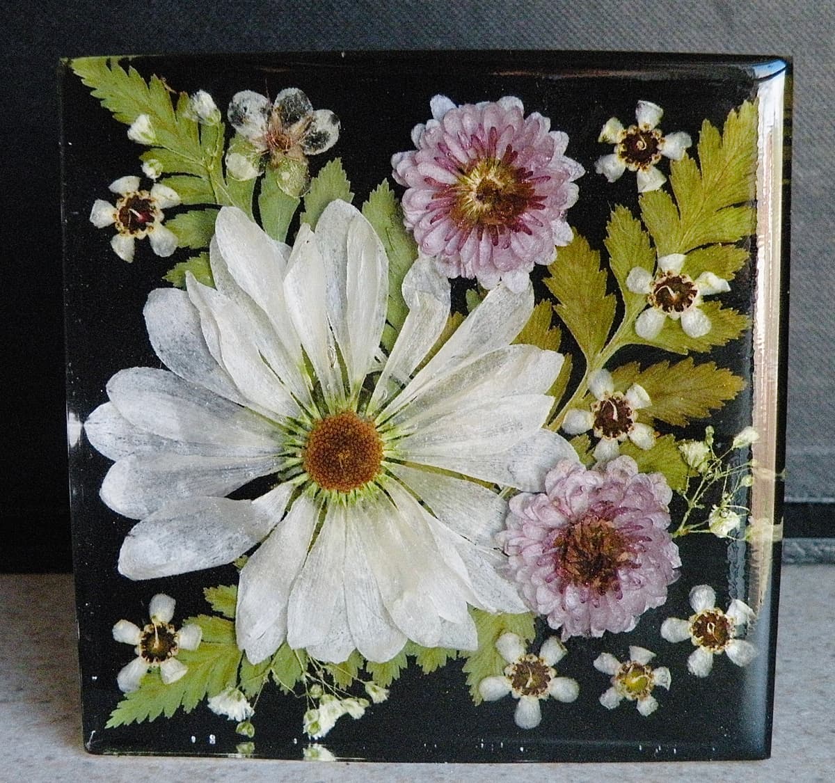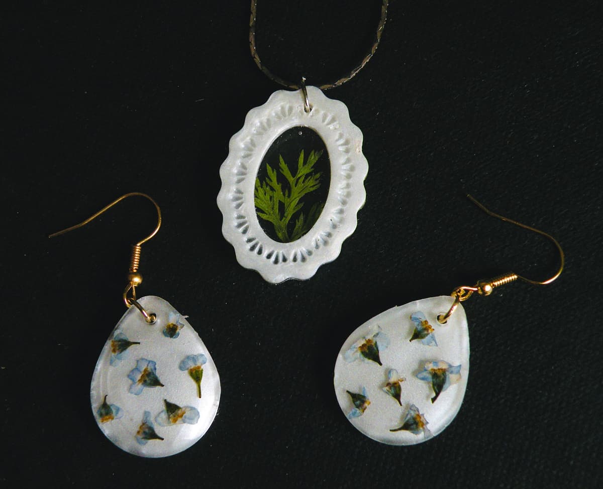 I create art and jewelry using my own pressed flowers.