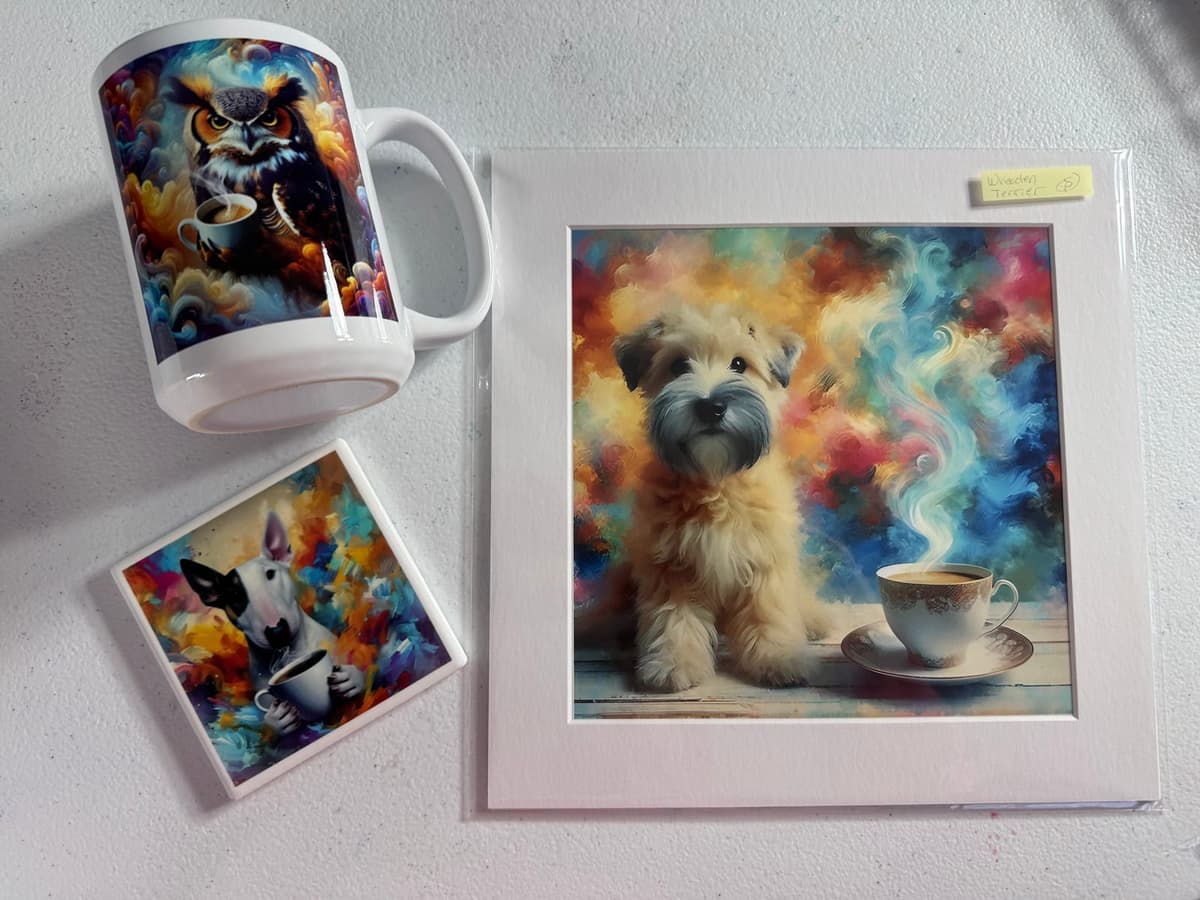 The Coffee Critters features original digital art of animals enjoying their favorite brew, brought to life through hands-on craftsmanship. Each design begins as a digital concept that I personally refine through detailed editing and color correction to achieve a warm, cohesive style unique to our brand. All mugs and coasters are hand-pressed in our home studio, and prints are finished and packaged by hand. Our family-run business blends digital creativity with traditional craft techniques, creating cheerful, high-quality pieces that celebrate coffee, imagination, and the charm of our favorite critters.